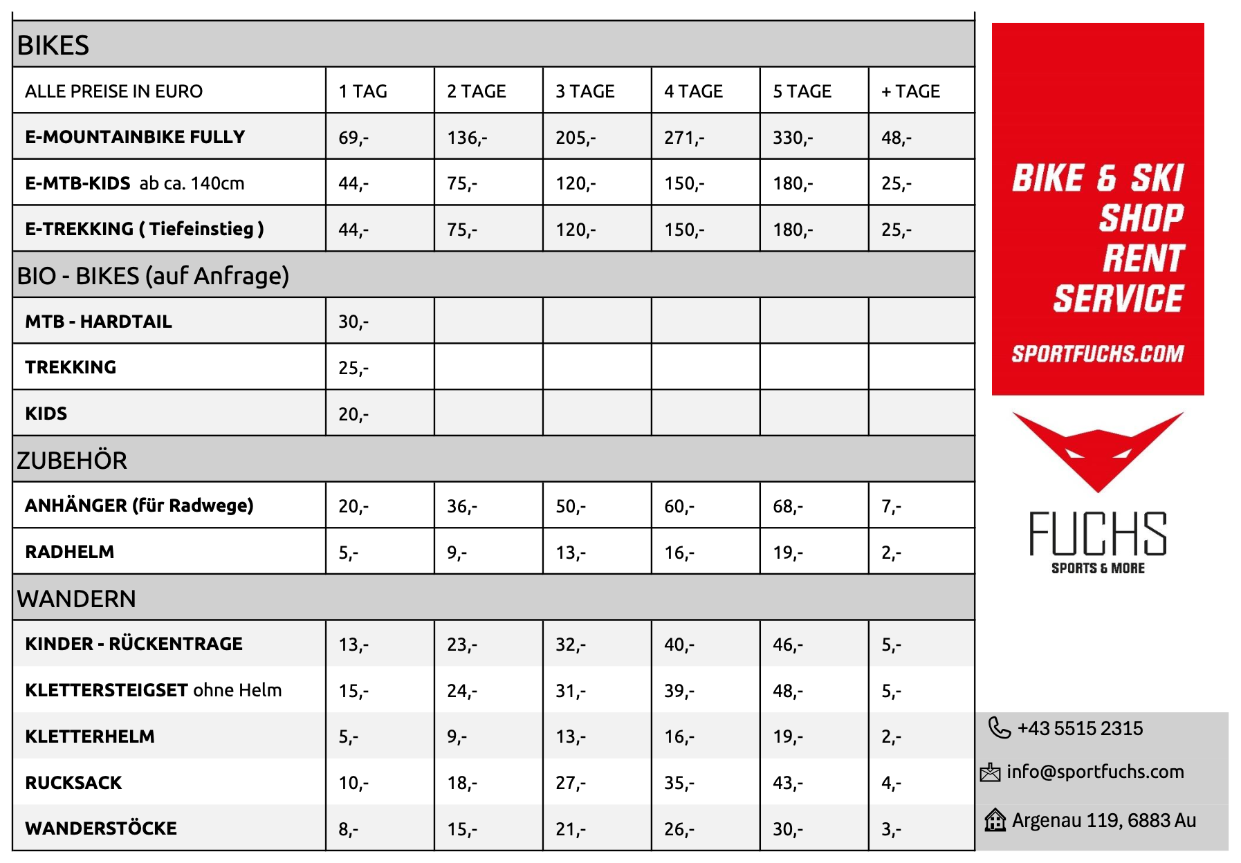 Mietdauer oder Kategorie können jederzeit vor Ort geändert werden